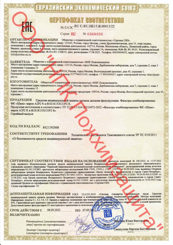 - Фильтр комбинированный (ФК) «Шанс» (марки AB1E1K1COSXP2) - 1 шт.;
